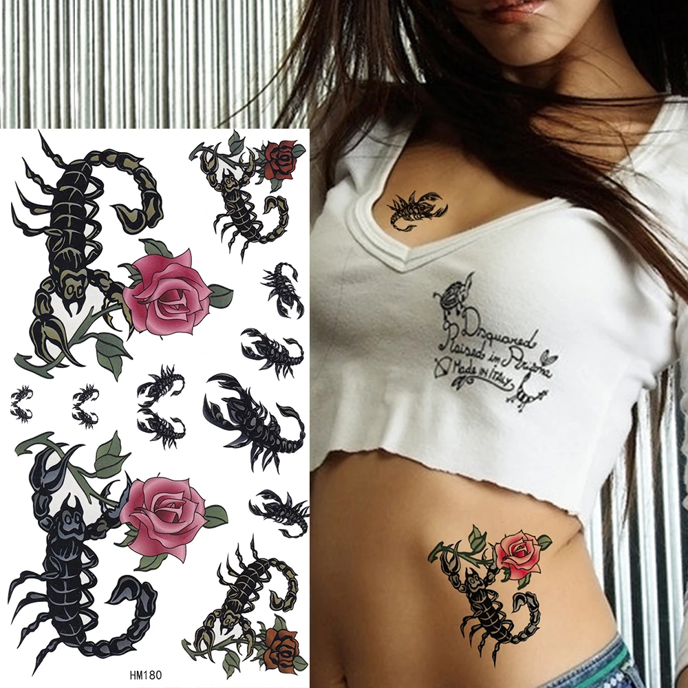 Roi Cheval Cool Scorpion Rose Beaute De Tatouage Etanche Bras Tatouage Manches Flash Temporaire Autocollant De Tatouage Aliexpress