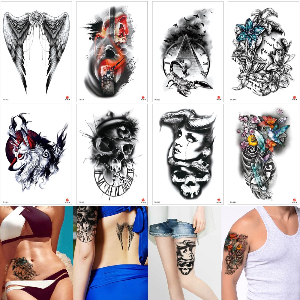 Acheter Art Tribal Corps Noir Tatouage Wing Skull Femmes Flower Birds Scorpion Designs Faux Temporaire Bras Jambe Arriere Taille Manches Autocollant De Tatouage Dencre 2020 De 0 6 Du Homimly Fr Dhgate Com