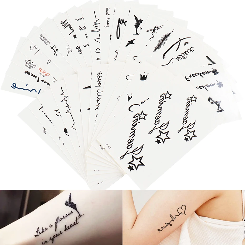 30 Pieces Mode Femmes Fille Temporaire Tatouage Autocollant Courbe Mot Tatouage Autocollant Etoile Design Bras Corps Eau Decalcomanies Curseur Jia01 A30 Aliexpress