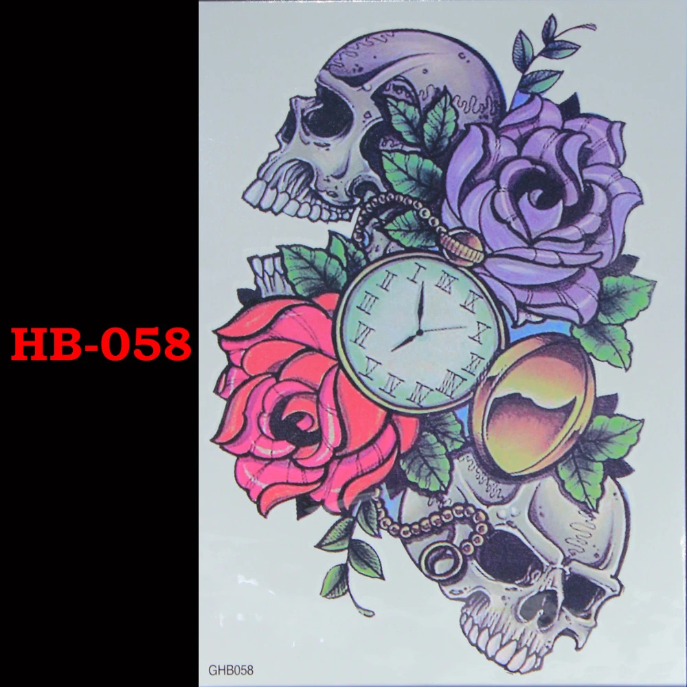 Tatouage Temporaire Tete De Mort Avec Rose Et Horloge Couleur