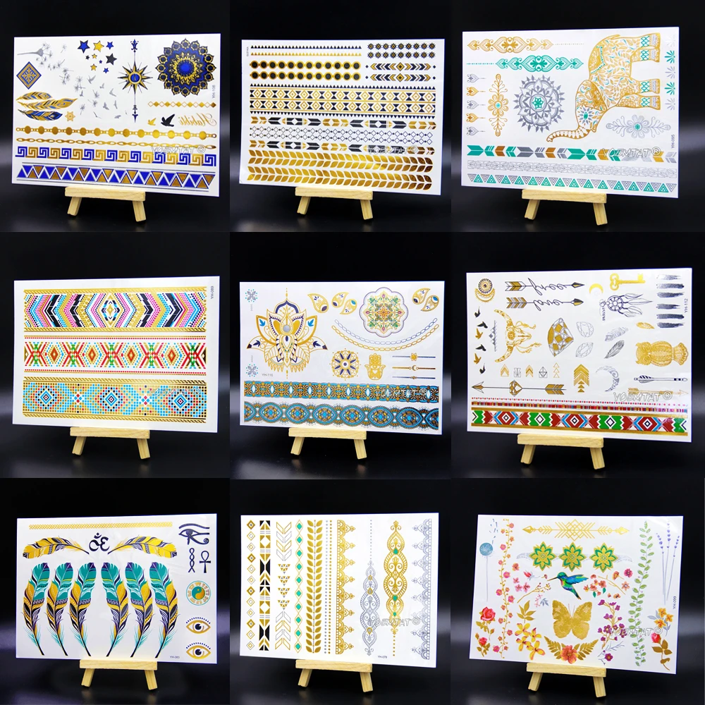 Vt 344 Impermeable Temporaire Tatouage Femmes Corps Bras Art Faux Flash Tatoos Or Argent Metallique Tatoo Autocollants Fille Bracelet Poignet Aliexpress