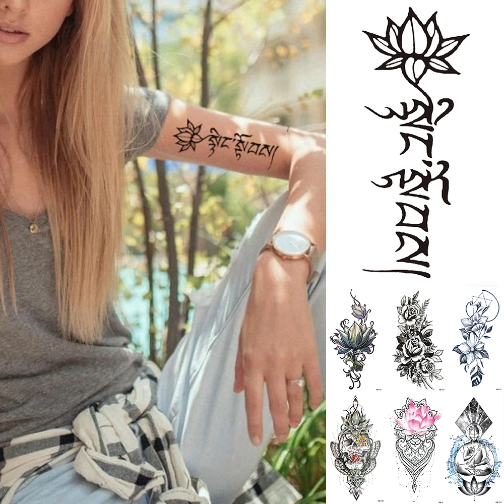 Yuran Bracelet Brassard Noir Inde Genasha Lotus Faux Tatouages Temporaire Femmes Jambe Bras Tatouage Autocollant Impermeable Corps Tatto Decalque Aliexpress
