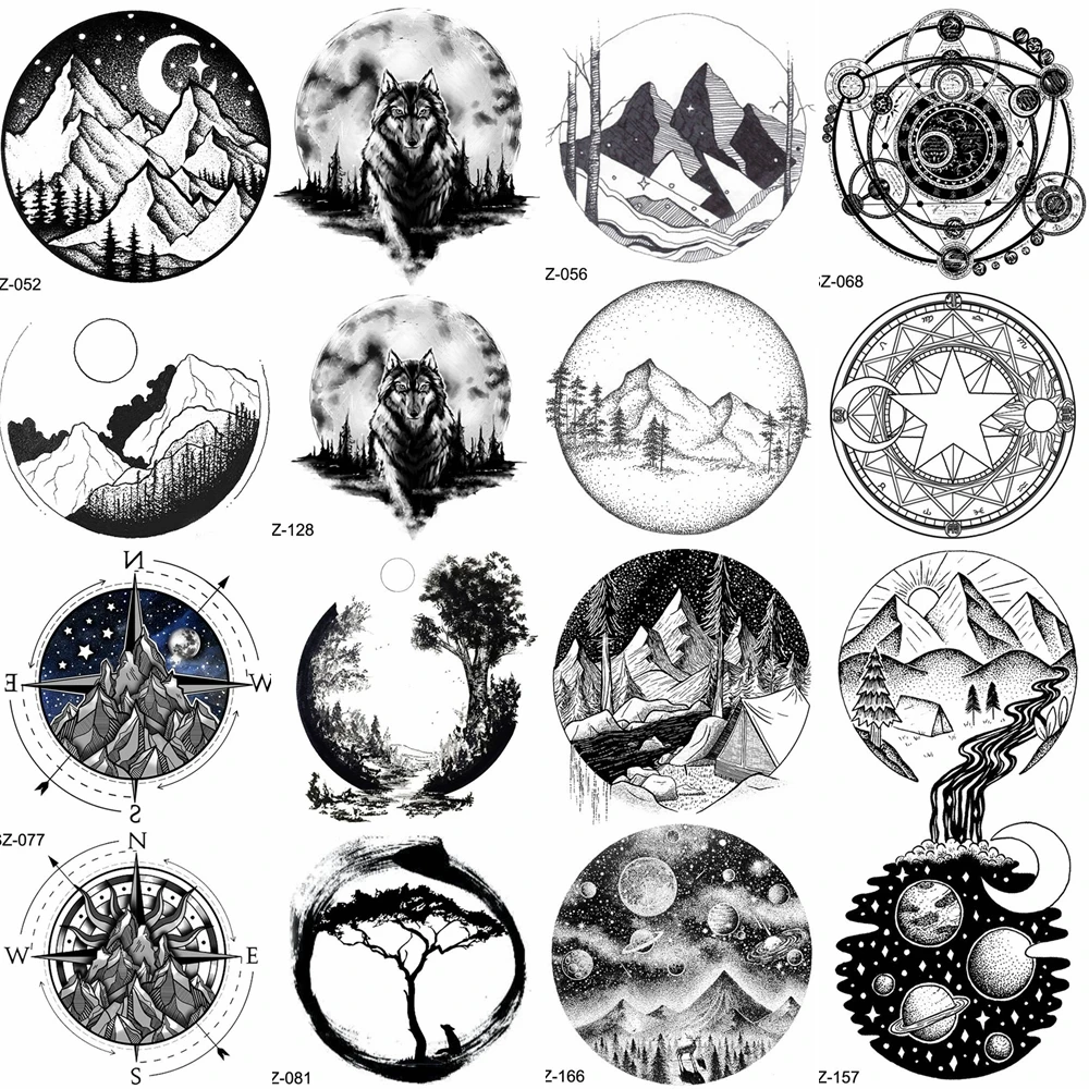 Yuran Autocollants De Tatouage Geometriques Pour Hommes Faux Tatouage 3d Rond Noir Montagne Riviere Corps Bras Lune Temporaire Cheville Loup Aliexpress