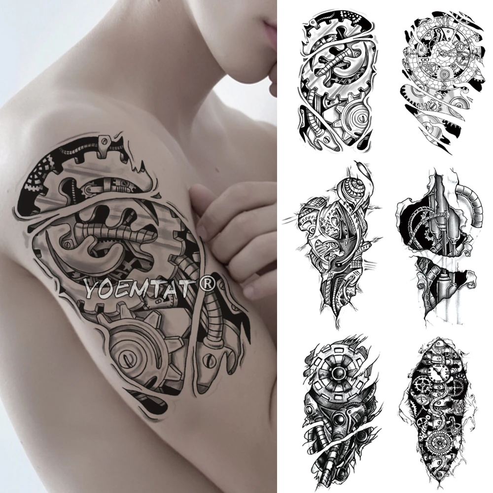 3d Bionic Engrenage Bras Temporaire Tatouage Autocollant Electricite Metal Mecanique Etanche Tatto Robot Corps Art Faux Tatoo Hommes Femmes Aliexpress