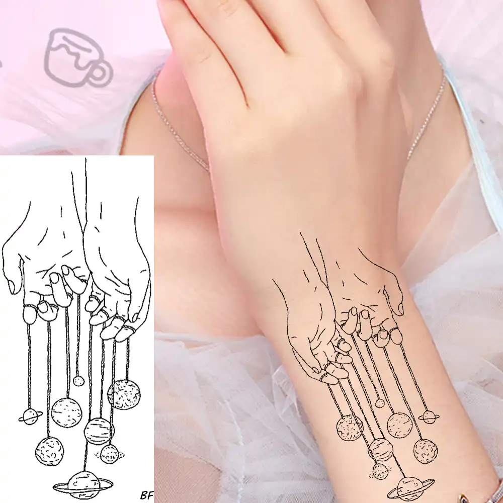 Vankirs Noir Creatif Art Au Trait Planete Lune Faux Tatouages Autocollants Femmes Bras Poignet Tatto Temporaire Petit Corps Art Tatouage Pour Les Enfants Aliexpress