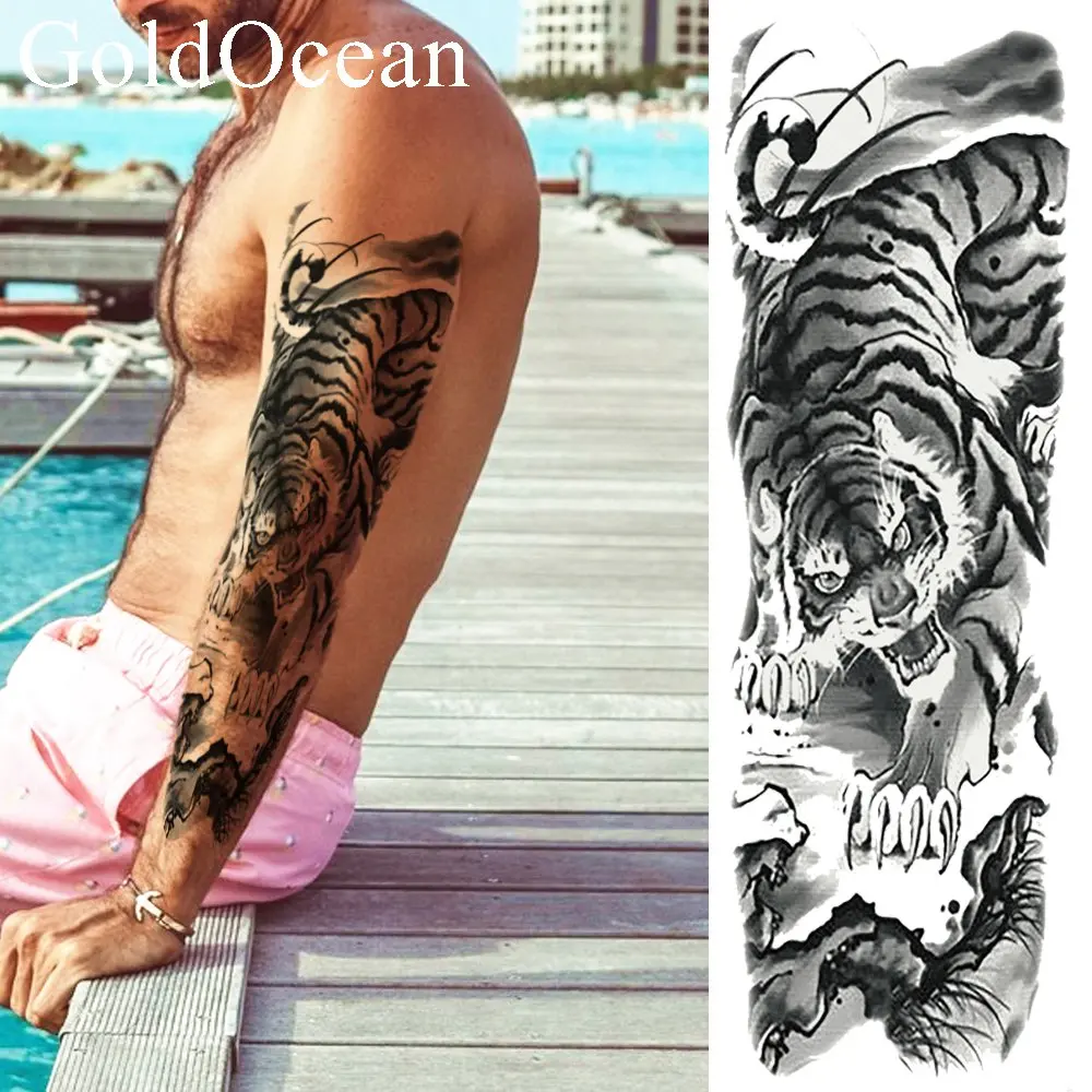 Grand Autocollant Noir De Tatouage Temporaire Impermeable 8 Feuilles Faux Tatouages Pour Bras Complet Pour Hommes Et Femmes Aliexpress