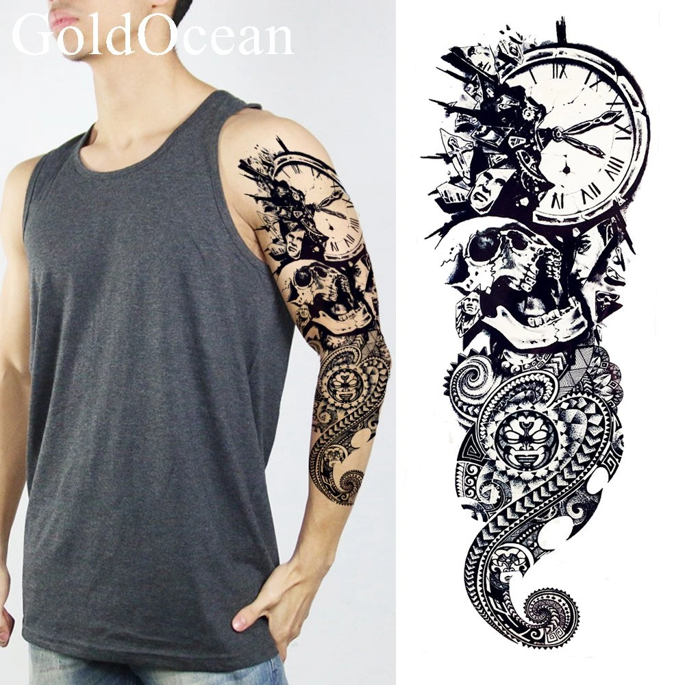 Tatouage Temporaire De Longue Duree Horloge Henne Pour Hommes Autocollant De Bras Complet Pour Garcons Art Corporel Jetable Etanche Aliexpress