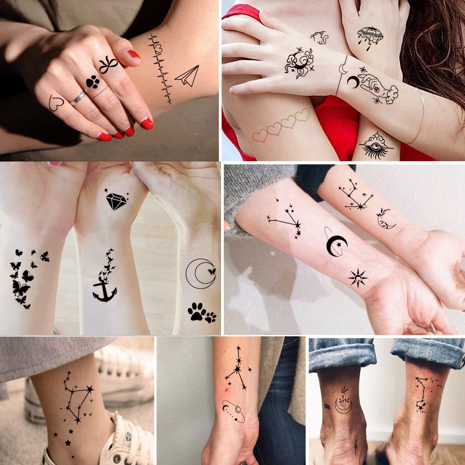 Yazhiji 60 Feuilles Minuscule Etanche Tatouage Temporaire Lune Etoiles Constellations Musique Boussole Ancre Mots Lignes Fleurs Pour Enfants Adultes Hommes Et Femmes Amazon Fr Beaute Et Parfum