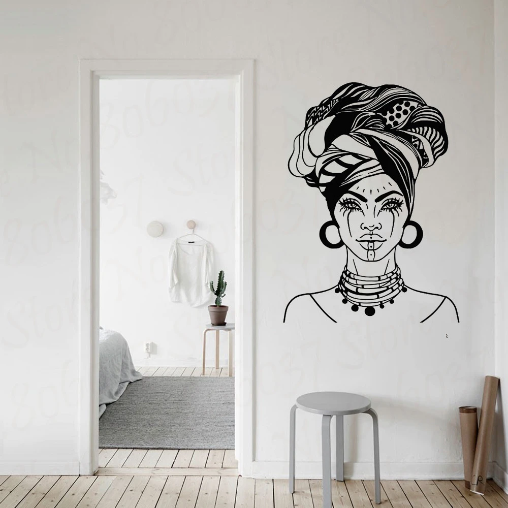 Autocollant De Tatouage De Visage Foulard De Femme Africaine Mode Native Papier Peint En Vinyle Pour Interieur Art Domestique Wl1647 Aliexpress