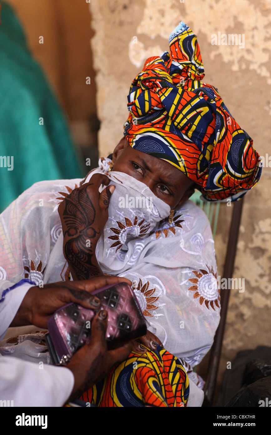 Femme Au Marche De Djenne Mali Afrique Avec Des Tatouages Tribaux Sur Les Mains Et Les Pieds Photo Stock Alamy