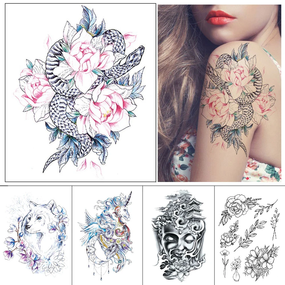 Faux Tatouage Autocollant Temporaire Motif Fleur Licorne Joss Oiseau Imprime Noir Impermeable Pour Homme Et Femme Bras Cuisses Aliexpress