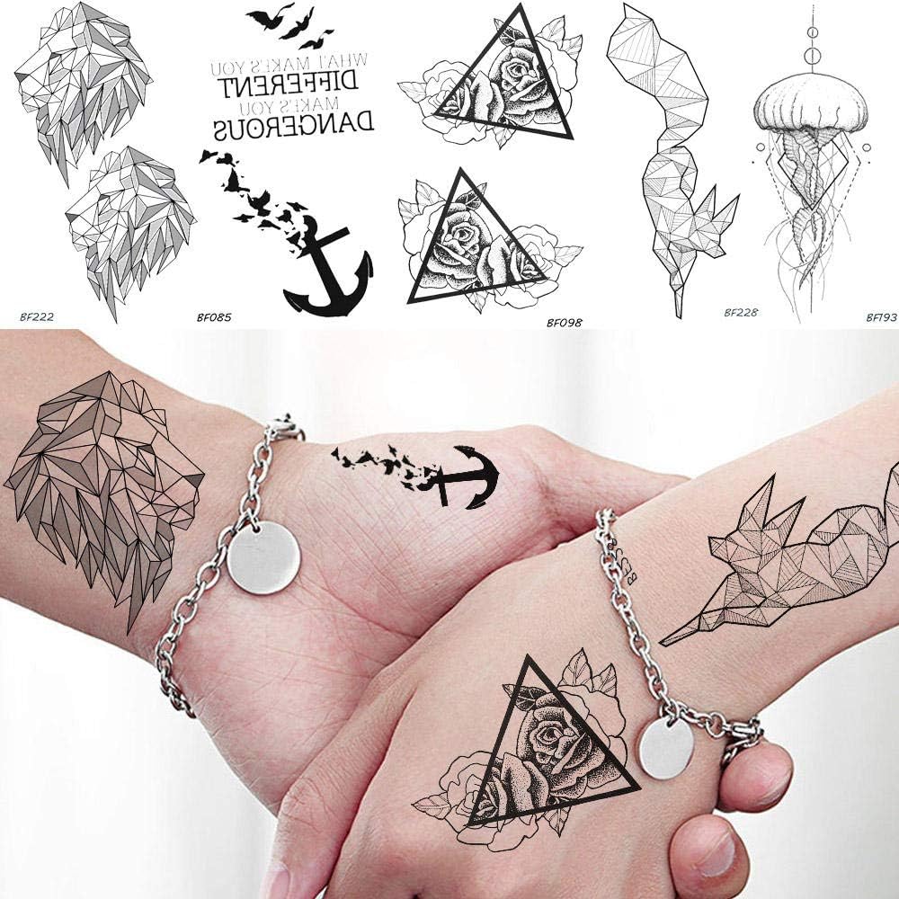 Tatouages Temporaires Homme Sticker Tatouage Tempopary Geometrie Lion Fox Rose Triangle Impermeable A L Eau De Tatouage Meduse Ancre Noir Tatouages Sexy Bras Amazon Fr Beaute Et Parfum