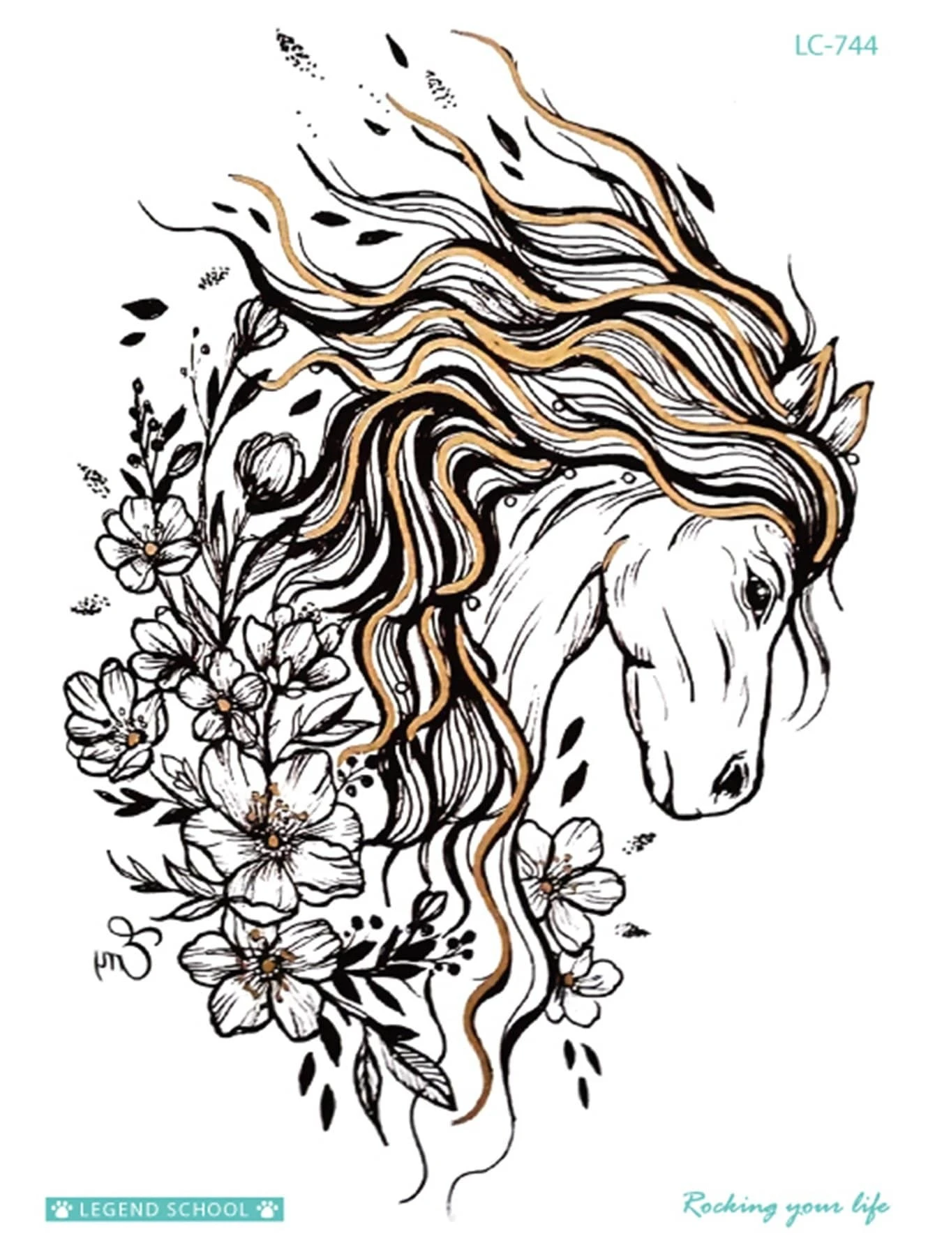 Tatouage épaule femme fleur. Les chevaux sont des animaux qui respirent lélégance en raison de leur façon de marcher trotter et galoper.