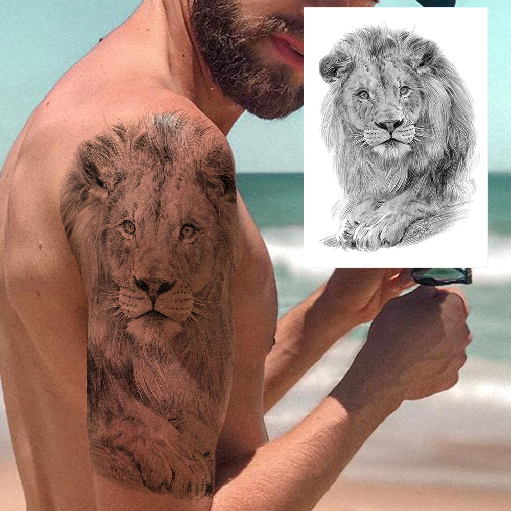 Acheter Grand Bras Croquis De Tatouage Lion Tigre Etanche Autocollant De Tatouage Temporaire Sauvage Feroce Animal Hommes Plein Oiseau Totem Tatouage De 1 28 Du Mart05 Fr Dhgate Com